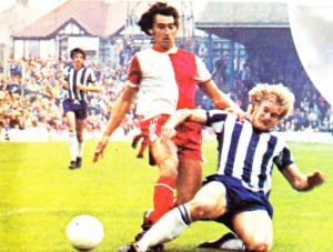 That all changed in 1975-76 – Albion’s 75th anniversary season – and Binney was on fire, netting 23 goals as Albion narrowly missed out on promotion. Taylor still couldn’t resist chopping and changing Binney’s strike partners. He started out with new arrival Neil Martin, an experienced Scottish international, then had Nottingham Forest loanee Barry Butlin.